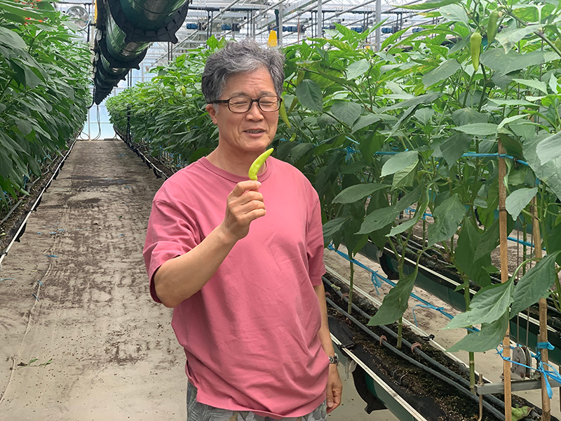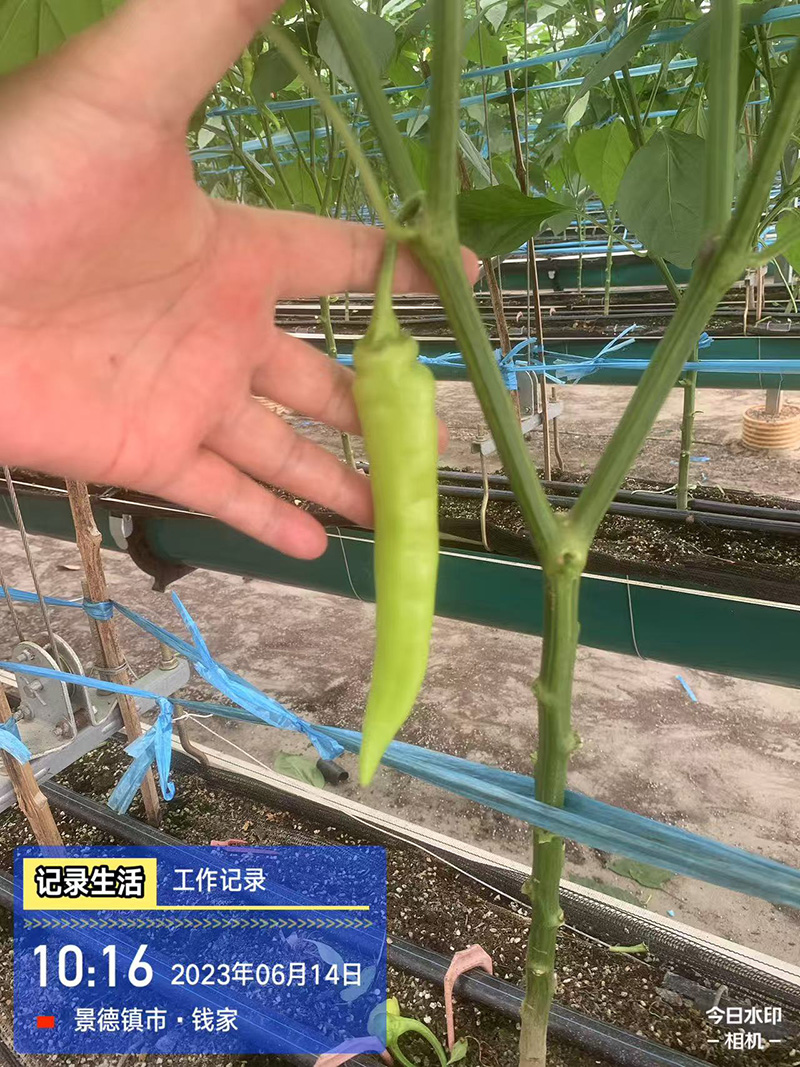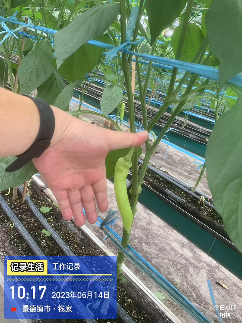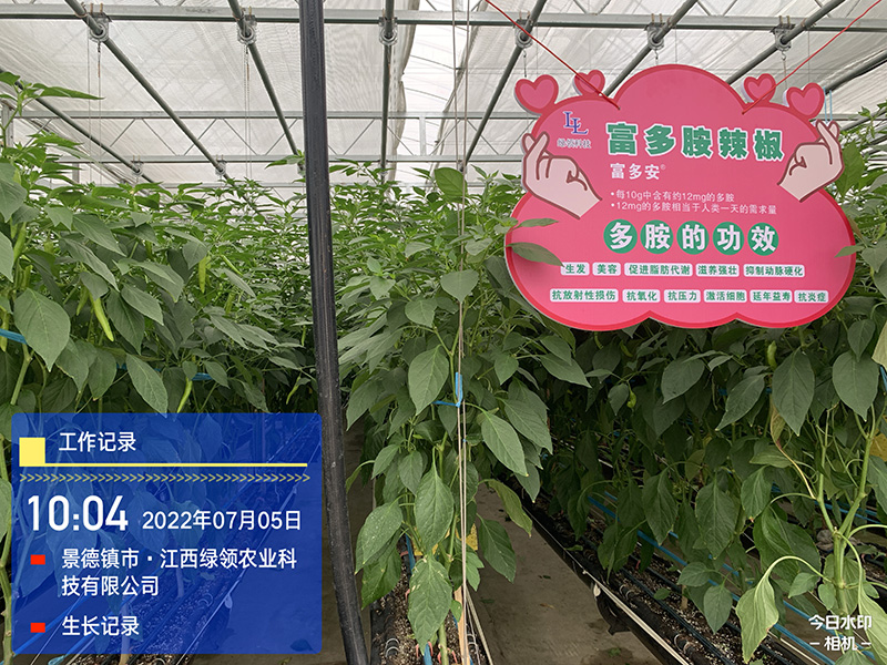 由韩国江原大学医生物工程学院李海翊教授与中国番茄大王李景富教授团队合作开发的富多胺辣椒新品种。在江西大棚的生长期间,给予适当的生长环境,空中栽培,精耕细作,精心呵护辣椒的长大。采收期定尺采收,只收取9-11cm定尺收取,多胺含量最高的辣椒。